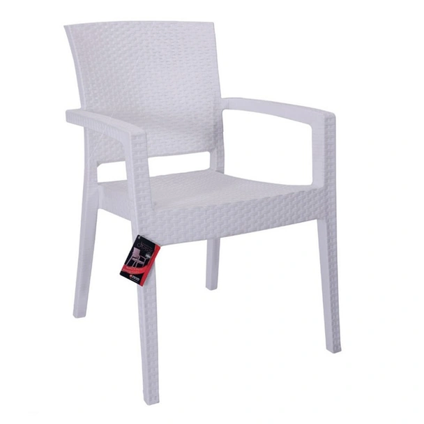 Градински стол с подлакътници бял Zeugma Rattan MEVSIM