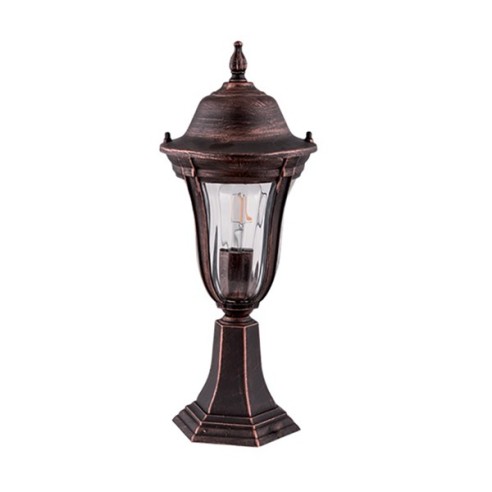 Фенерът Mark 204 се отличава с изискан външен вид, вдъхновен от класическия стил на старите улични лампи. Изработен от здрава кована мед, той не само придава автентичен чар, но и гарантира дълъг живот дори при интензивно външно използване. Благодарение на своята устойчива конструкция, фенерът е подходящ за различни климатични условия.