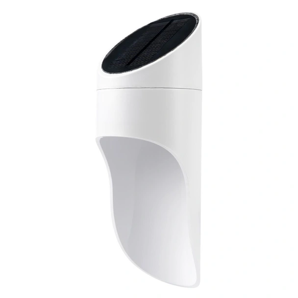 LED соларна лампа на марката OPTONICA в бял цвят, подходяща за осветяване на двор или градина.