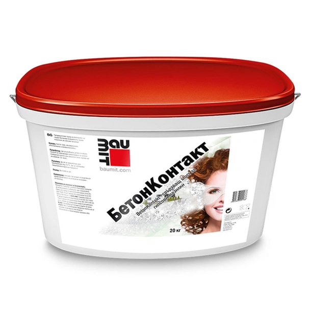 Baumit BetonKontakt е специализиран течен грунд, проектиран да функционира като високоустойчив свързващ мост между гладки бетонови основи и последващи гипсови покрития. В голямата и икономична разфасовка от 20 кг, този продукт е незаменим при мащабни строителни обекти и цялостни ремонти. Той е разработен специално за обработка на плътни, неабсорбиращи повърхности, където стандартните грундове не могат да осигурят необходимата механична адхезия, гарантирайки дълготрайност на положената мазилка.