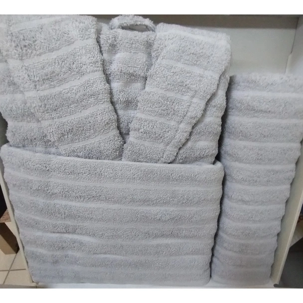 Съдържание: 1 брой халат за баня, 1 брой голяма кърпа за тяло, 1 брой кърпа за лице
