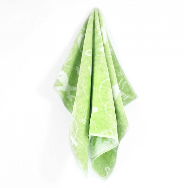 Детска хавлия със самолети, балони и колички на марката BULGARIA TEX в зелен цвят и с размери 50x70 см.