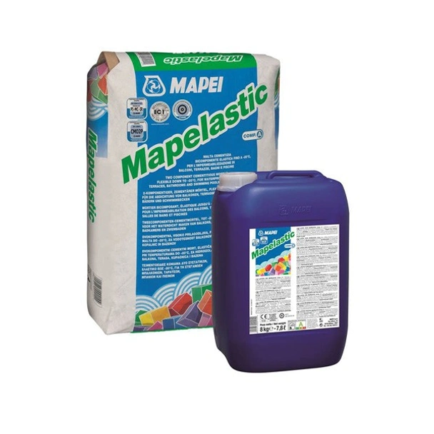 Двукомпонентен, еластичен разтвор на циментова основа Mapelastic MAPEI за защита и хидроизолация на бетонни повърхности, плувни басейни и балкони.