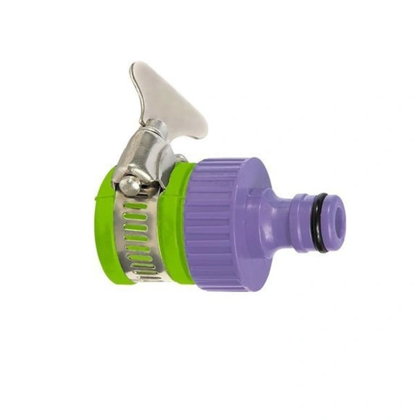 Адаптерът със стягащ хомот позволява свързването на маркуча с крана без резба. Щуцерният изход на адаптера е съвместим с всички елементи на поливната система PALISAD.