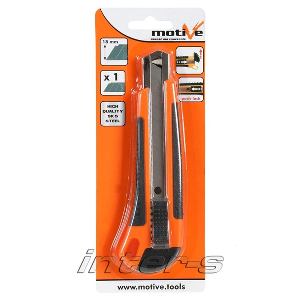 Нож с автоматично заключване на сегмента на острието. Пластмасов корпус с неплъзгащи вложки.