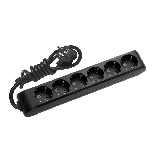 РАЗКЛОНИТЕЛ PANASONIC 6 ГНЕЗДА+ 1.5М. КАБЕЛ ЧЕРЕН WLTB04612BL