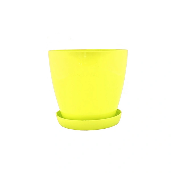 Пластмасова гланцирана кръгла саксия за цветя с подложка.