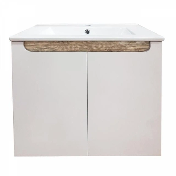 Окаченият стенен монтаж е отлично решение за оптимално използване на пространството, особено в по-малки бани. Той улеснява почистването на пода и създава усещане за лекота и подреденост. Включеният порцеланов умивалник с ширина 60 см е устойчив, лесен за поддръжка и подходящ за интензивна ежедневна употреба.