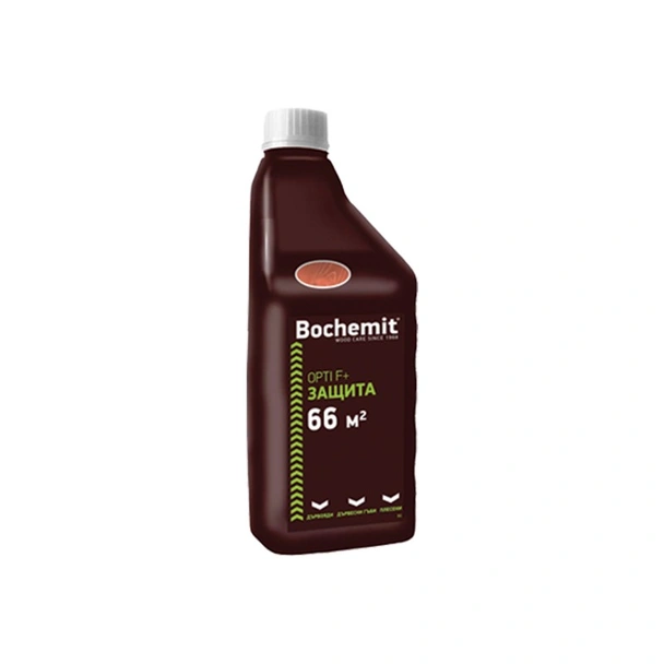 Bochemit OPTI F е висококачествен концентриран импрегнант, проектиран да осигури широкоспектърна биологична защита на дървесината. Благодарение на своята силно концентрирана формула, продуктът е изключително икономичен, позволявайки обработката на големи площи с малко количество препарат. Кафявият цвят на разтвора служи като отличен индикатор при нанасяне, като гарантира, че всяка част от дървената повърхност е надеждно третирана. Този импрегнант прониква дълбоко в структурата на материала, като същевременно запазва неговата естествена здравина, якост и автентичен външен вид.
