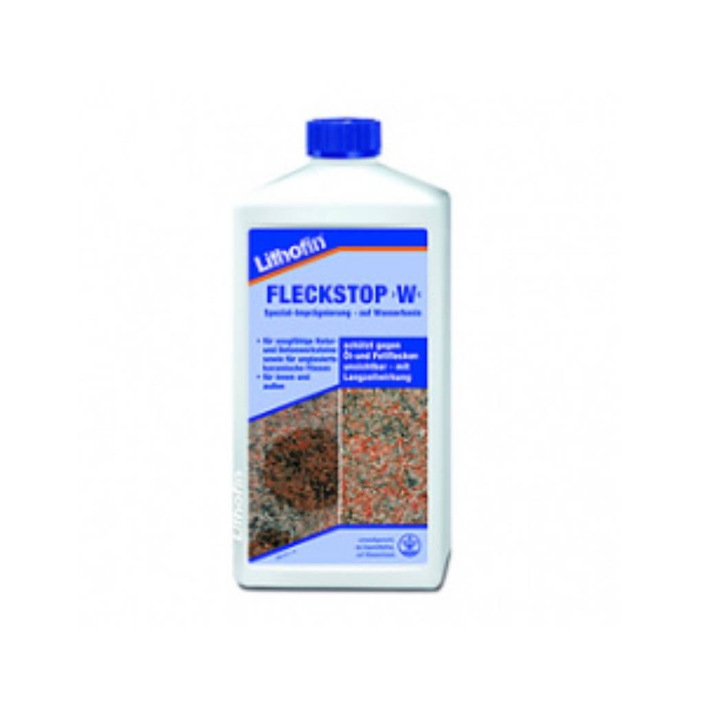 Lithofin FLECKSTOP W е специален водоразтворим импрегнатор, разработен за защита и поддържане на разнообразни строителни повърхности. Продуктът е готов за употреба и не съдържа органични разтворители, което го прави екологичен и безопасен избор. Формулиран е с много ефективни полимери и добавки, които отблъскват вода и масла, предотвратявайки образуването на нежелани петна и замърсяване.