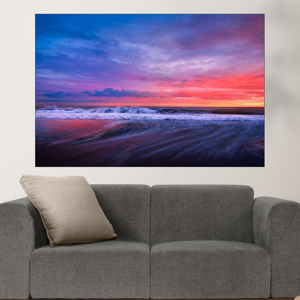 Декорация за стена (картина, пано) с мотив "Морски пейзаж на разсъмване - картина пано за стена". Изработена от олекотено PVC с дебелина 5 мм или канава от 100% памук, опъната върху дървена подрамка с дебелина 5 см. Изображението се печата с висококачествен UV печат, което е гаранция за запазване на цветовете с години!