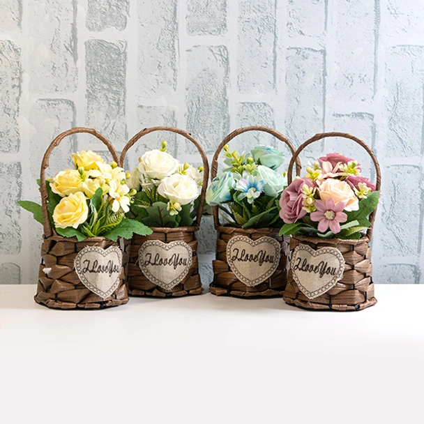 Благодарение на естествено изглеждащите цветове и декоративната кошничка, композицията създава приятна атмосфера и усещане за уют, без да изисква грижи като поливане или подрязване.