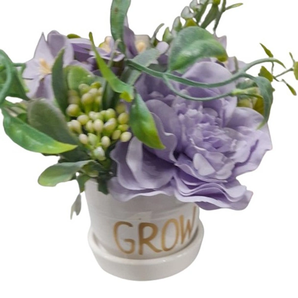 Изкуствени лилави божури в кашпа, подходящи за аранжировка на дома, офиса, терасата.