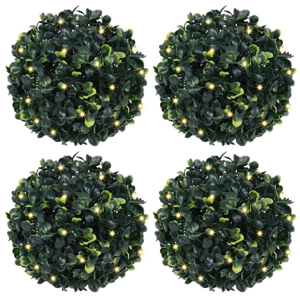 Изкуствени топки от чемшир 4 бр. - с LED светлини зелени 12 см
