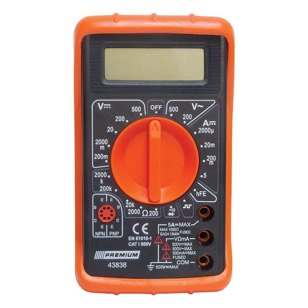 Лесен за употреба цифров мултицет на марката PREMIUM с дисплей с 4 знака (1999) и звукова индикация.