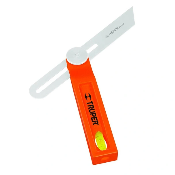 Ръчен ъгломер с вграден нивелир на марката TRUPER, предназначен за измерване и пренасяне на ъгли.