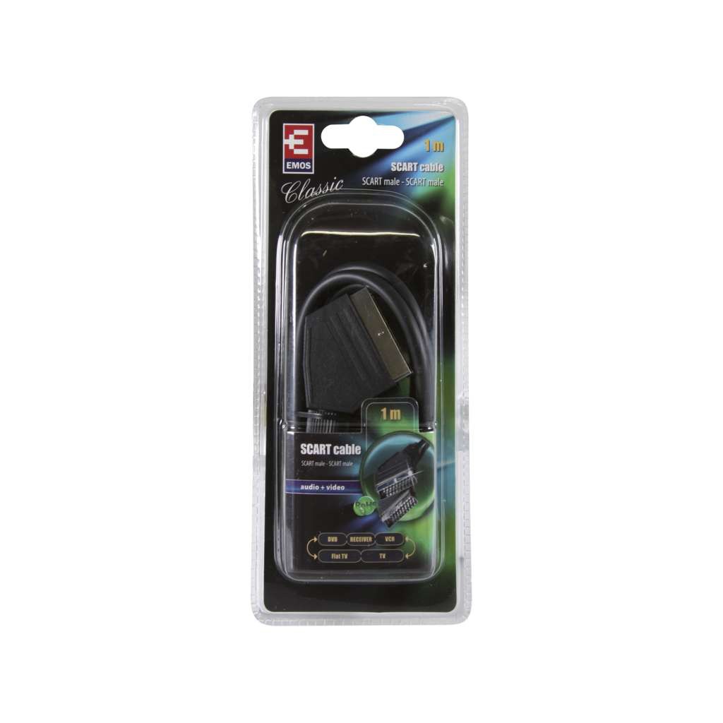 Кабелът EMOS SCART/SCART SB2001 се използва за свързване на устройства със SCART интерфейс. Благодарение на дължината от 1 метра, той е удобен за подреждане зад телевизори, рафтове или мултимедийни центрове. Подходящ е за:
