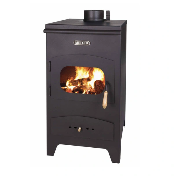 Металик Арт е стилна и функционална камина на твърдо гориво, проектирана да осигури уют и топлина в помещения с площ около 43 m2. Изработена от здрава и висококачествена ламарина с голяма дебелина, тази печка гарантира устойчивост и дълъг експлоатационен живот. Визуалният акцент са изтънчените златисти месингови елементи, които придават на модела завършен и луксозен вид, превръщайки го в красиво допълнение към всеки интериор.