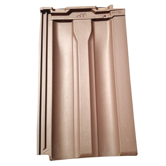 Представлява геометрична керемида с двойни жлебове и двойни канали на горната повърхност, която осигурява висока механична устойчивост и сигурност срещу атмосферни влияния.