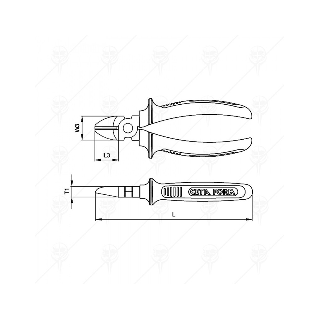 Професионални клещи резачки на марката Ceta Form. Изработени са от висококачествена хром-ванадиева сплав, придаваща голяма здравина. Разполагат с двукомпонентна дръжка. Ръчният инструмент е с обща дължина 160 мм. Клещите са подходящи за рязане на кабели.