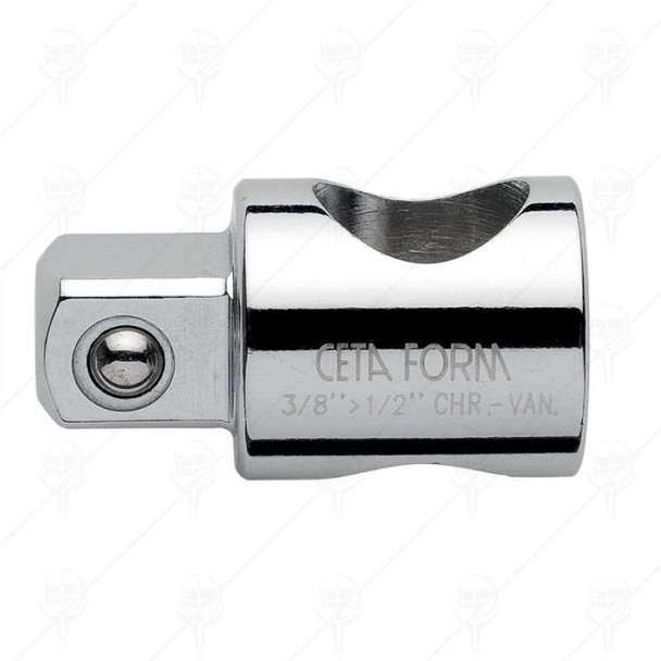 Адаптер ма марката Ceta Form. Представлява преход за вложки и тресчотки за върток с размер 3/8” женски-1/2”мъжки и дължина 43 мм. Изработен е от висококачествена хром-ванадиева стомана, която гарантира по-висока износоустойчивост.