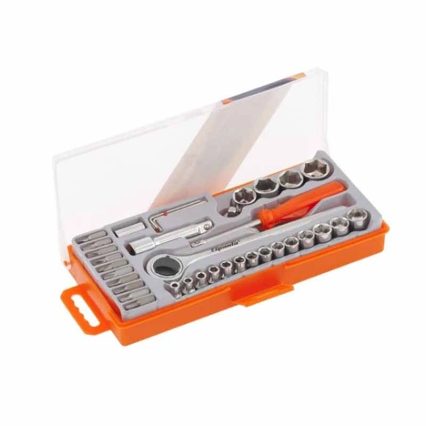 Комплект инструменти на марката SPARTA, състоящ се от 36 части, подходящ за затягане и разхлабване на винтове.