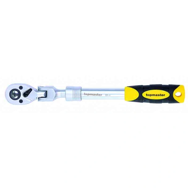 Тресчотка на марката Topmaster с телескопична двукомпонентна дръжка за по-добър захват, чупеща глава и телескопично рамо.