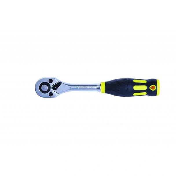 Усилена тресчотка на марката Topmaster с механизъм за бързо освобождаване и удобна двукомпонентна дръжка.