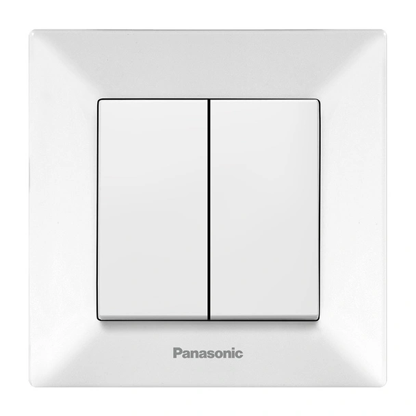 Двоен ключ от серията Arkedia Slim на Panasonic в бял цвят, предназначен за вграден монтаж.