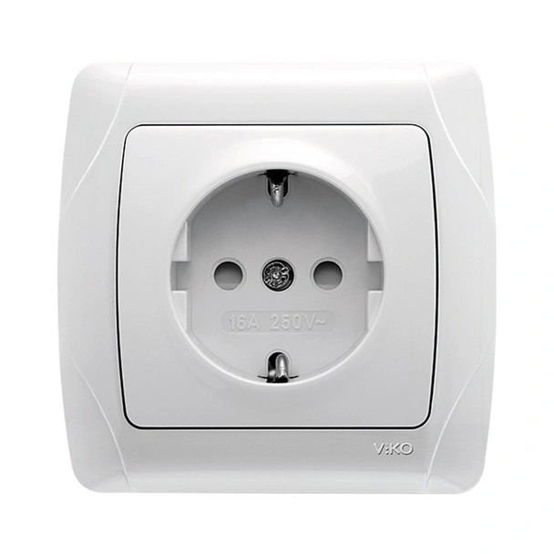 Ел. контакт шуко със защита за деца от серията Carmen на производителя Viko by Panasonic в бял цвят, предназначен за вграден монтаж.