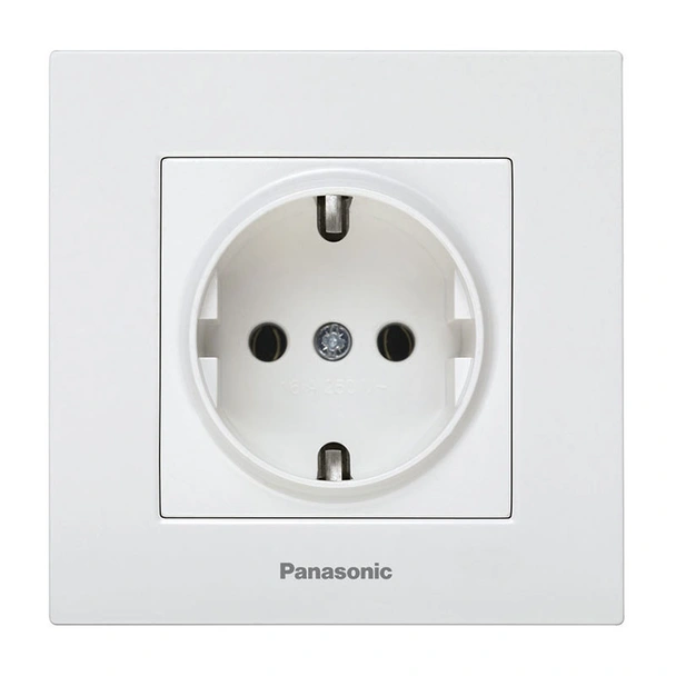 Eл. контакт от серията Karre Plus на Panasonic в бял цвят, предназначен за скрит монтаж с винтово свързване.