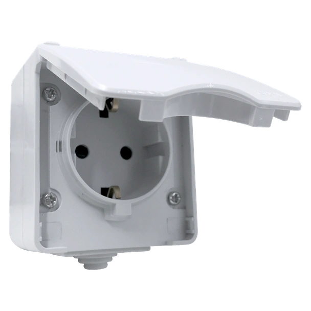 Контак за открит монтаж със степен на защита IP65. Предлага се в сив цвят.