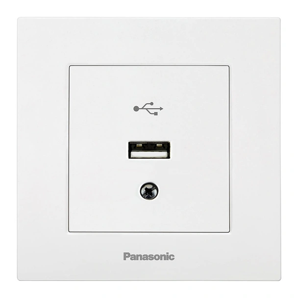 Конектор USB механизъм+капак от серията Karre Plus на Panasonic в бял цвят, предназначен за скрит монтаж.