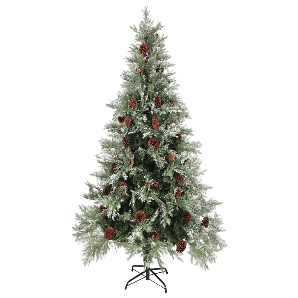 Коледна елха с шишарки, зелено и бяло, 225 см, PVC и PE