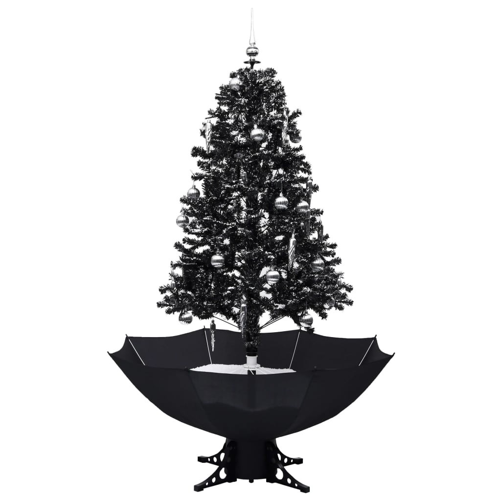 Черна коледна елха с валящ сняг и основа тип „чадър“ – 170 см