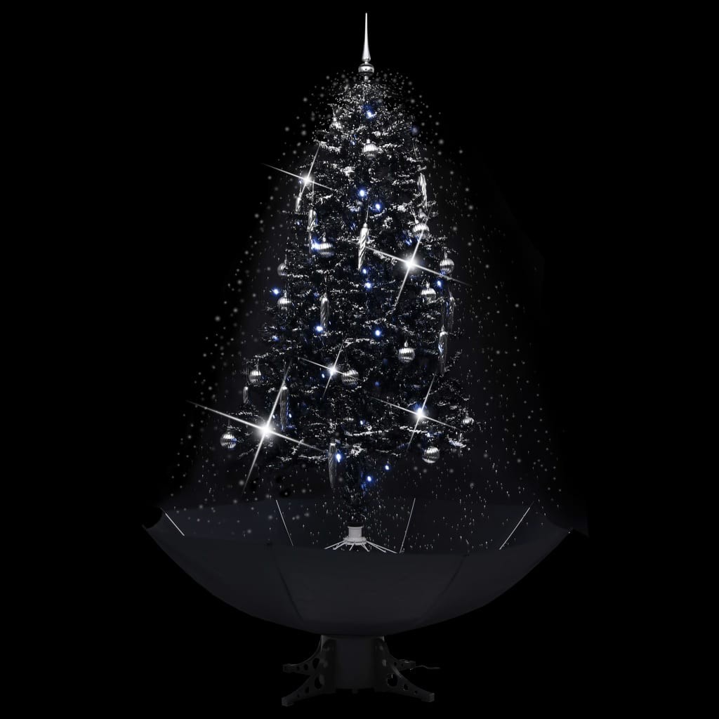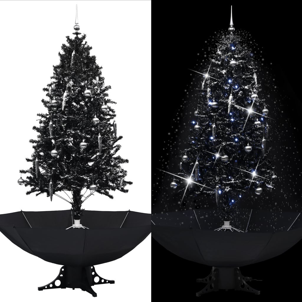 Коледна елха с валящ сняг и основа от чадър, черна, 190 см, PVC