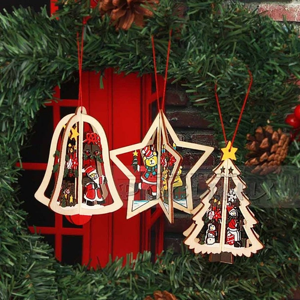 Коледна дървена 3D играчка за закачане