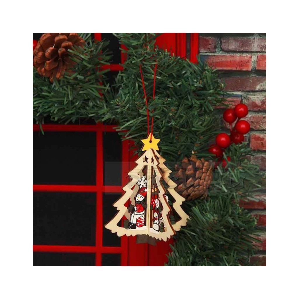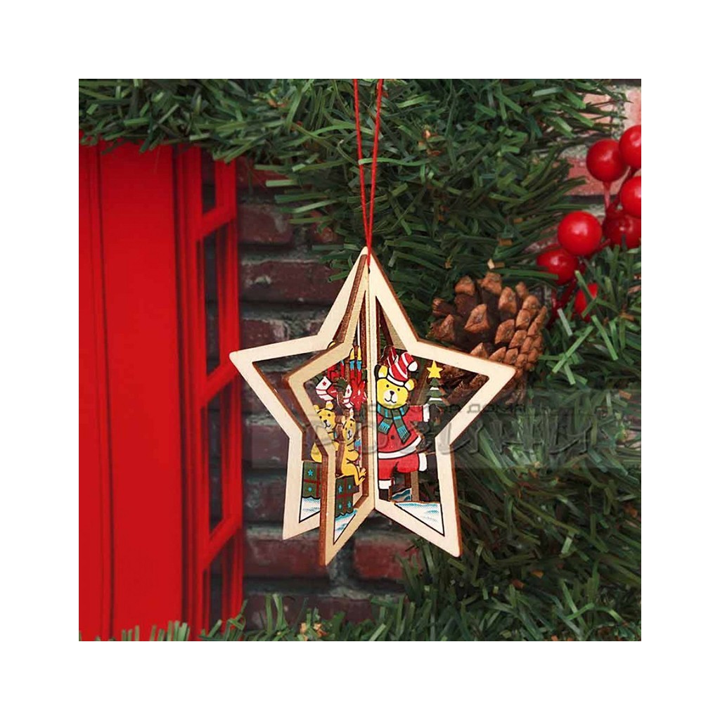 Придайте естествен и уютен завършек на Вашата празнична декорация с тази очарователна коледна дървена играчка. Проектирана с иновативен 3D ефект, тя се отличава от стандартните плоски орнаменти, като придава обем и динамика на коледното дърво. Изработена от екологично чист дървен материал, тази украса носи усещане за традиция и топлина, което я прави идеален избор за домове, заложили на рустик, скандинавски или класически стил в интериора.