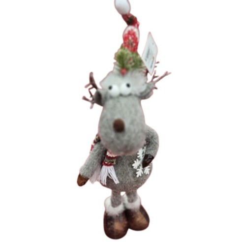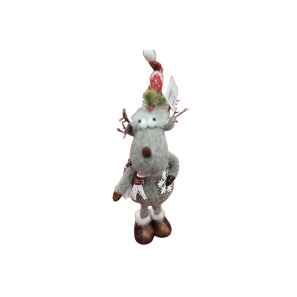Еленът Дашър впечатлява с меки сиви тонове, пухкава козина и красиво изработени аксесоари – червено-бял шал и фина шапка, които му придават типично зимно излъчване. Височината от 60 см го прави забележим акцент във всяка стая. Независимо дали е поставен до елхата, на пода или върху камината, той внася уют и празнично настроение в пространството.