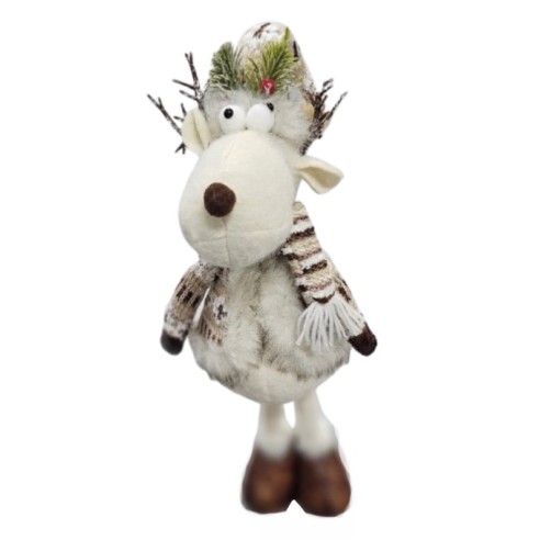 Внесете магията на Коледа у дома с изящната коледна фигура Еленът Дашър 60x20x13 см. Този елегантен бял елен съчетава стил, топлина и празничен дух, превръщайки се в централна част от вашата зимна декорация. С нежни детайли, меки материи и хармоничен дизайн, Дашър символизира изяществото и уюта на зимните празници. Той е идеален както за поставяне до коледното дърво, така и като ефектен акцент върху камина, рафт или в офис пространство.