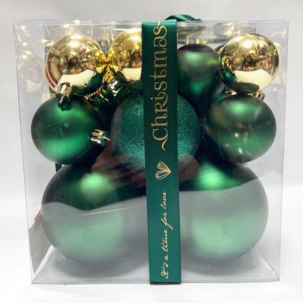 Внесете празнична свежест и изтънчен блясък във вашия дом с комплекта коледни топки в Перлено зелено и златно. Комбинацията от двата класически цвята създава елегантна и хармонична визия, която ще превърне всяка елха в истинско украшение. Подходящи както за традиционна, така и за модерна коледна декорация, тези топки ще придадат на интериора топлина и празничен чар.