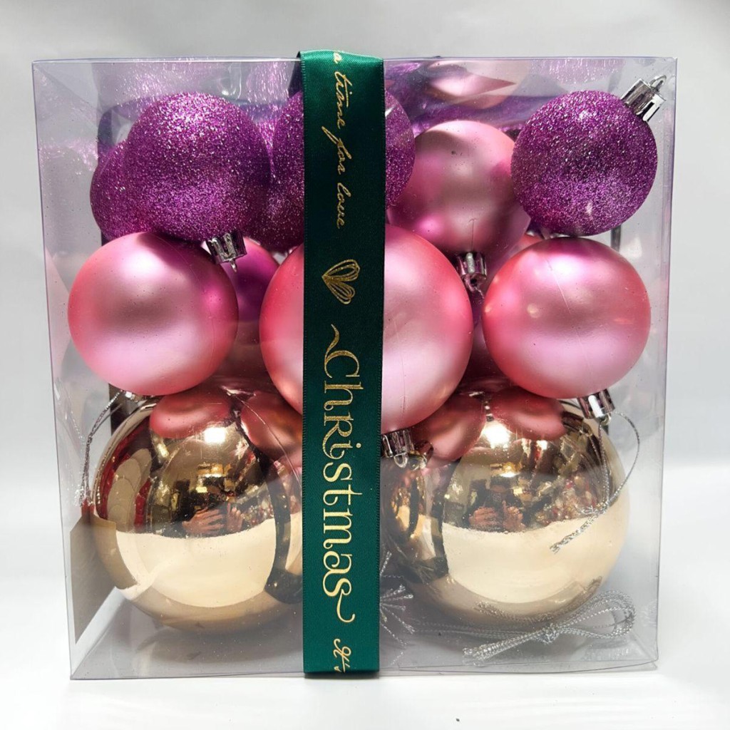 Създайте бляскава и елегантна празнична атмосфера с комплекта коледни топки Ø5/6/8/10 см в цветове Сияйна фуксия и златно. Тази колекция е идеалният избор за всички, които искат да внесат нежност, стил и изтънченост в коледната си украса. Комбинацията от розово и златно придава на елхата модерен, но същевременно топъл и празничен облик, подходящ за всеки интериор.