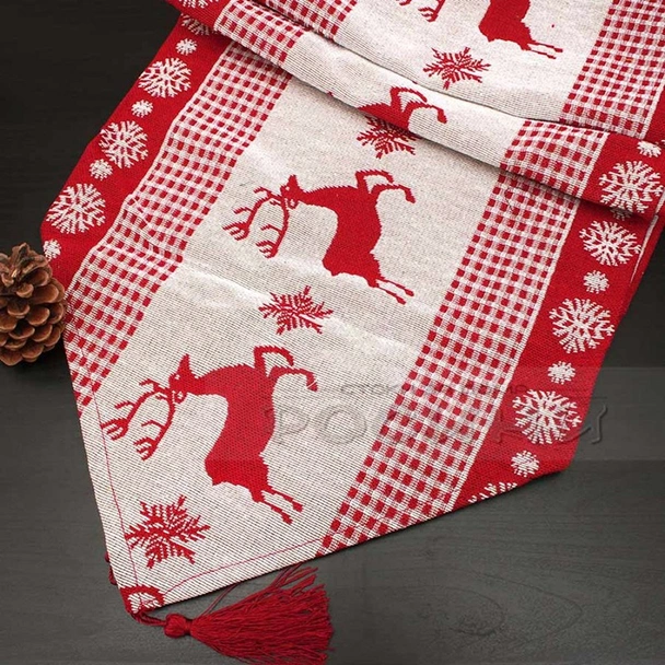 Стилен и красив коледен тишлайфер от плътен тъкан плат с релеф в традиционни цветове - червено и кремаво.