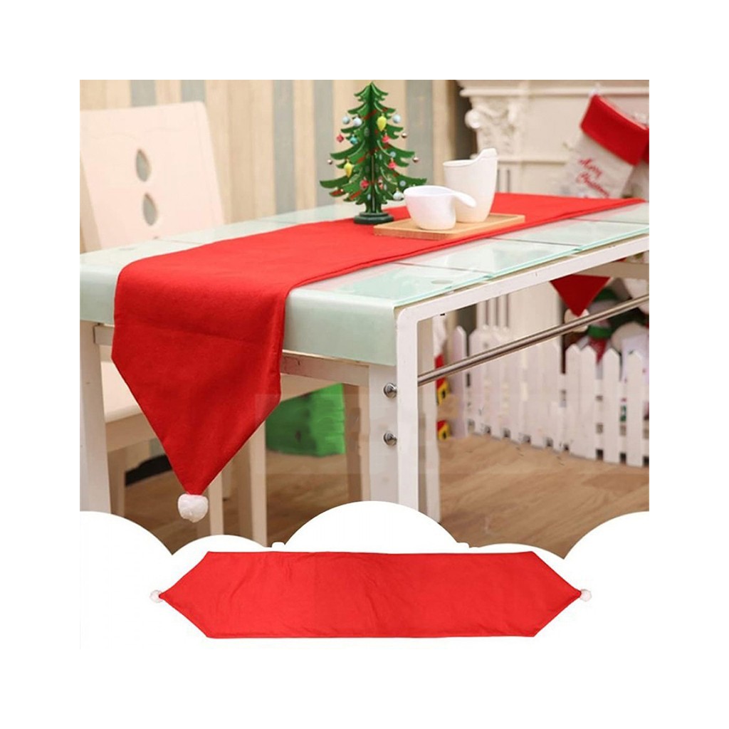 Коледен тишлайфер Класик в червен цвят и с бели пискюли, предназначен за декорация на коледната трапеза.