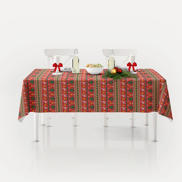 Коледна покривка за маса с изчистени ярки цветове, изработени чрез дигитален печат. Подходяща за сервиране и украса. Създава весело коледно настроение у дома.