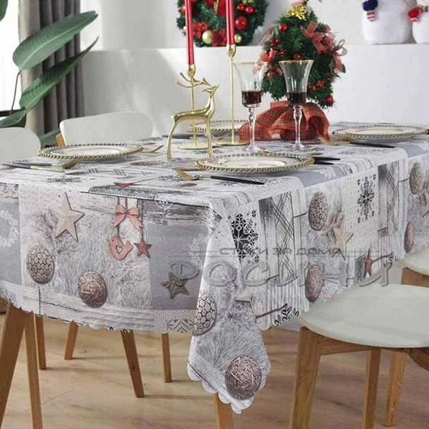 Красива коледна покривка за маса в Скандинавски стил в изчистени неутрални цветове и с размери 150x180 см.