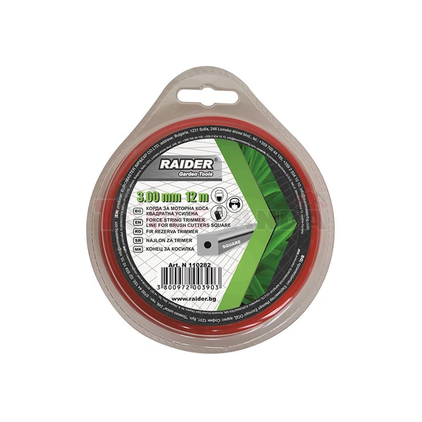 Koрда за коса / тример на Raider е с дължина 12 м и диаметър 3.0 мм. Тя е усилена, квадратна, с метална нишка и издържа на температура