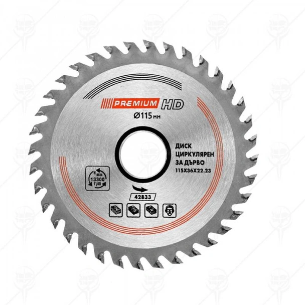 Диск циркулярен, подходящ за рязане на дърво на фирма PREMIUM. Дискът е изработен от въглеродна стомана с твърдост HRC38-44. Външният му диаметър е 125 мм, а вътрешния 22.23 мм. Разполага с 24 броя зъби, изработени от сплав YG8. Твърдост на видиите по Rockwell - HRC 89-91.
