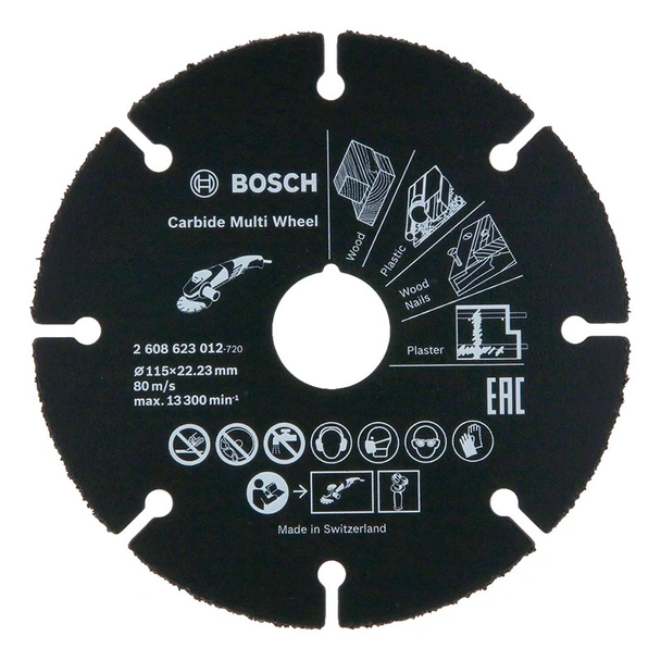 Carbide Multi Wheel 115мм на Bosch, притежава в средата отвор от 22,23 мм за малък ъглошлайф.