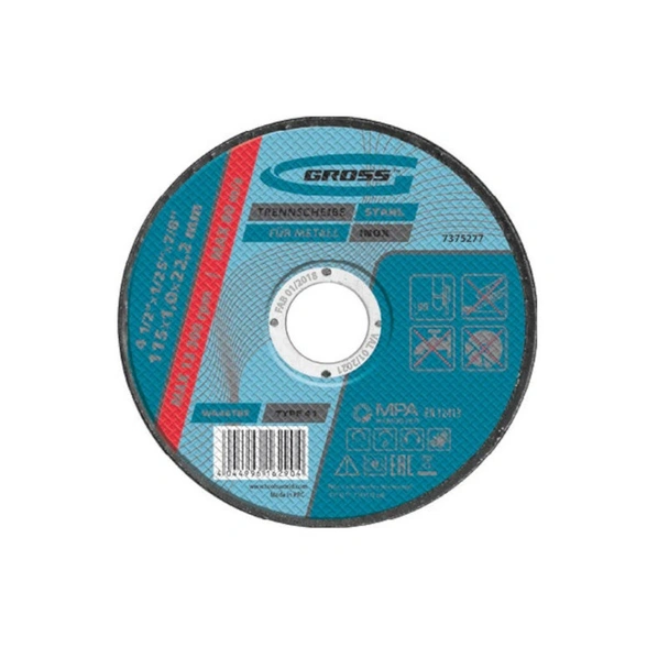 Диск за рязане на метал на производителя GROSS. Инструмента е с външен диаметър 230 мм, с вътрешен диаметър 22.2 мм и дебелина 2.0 мм. При работа с него се носят защитни очила и ръкавици, антифони, прахова маска и устойчиви обувки.